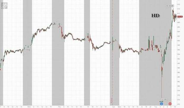 After initially sliding as much as 5%, Home Depot stock eventually surged over 4% in early Tuesday trading and was responsible for about half of all the DJIA gains.