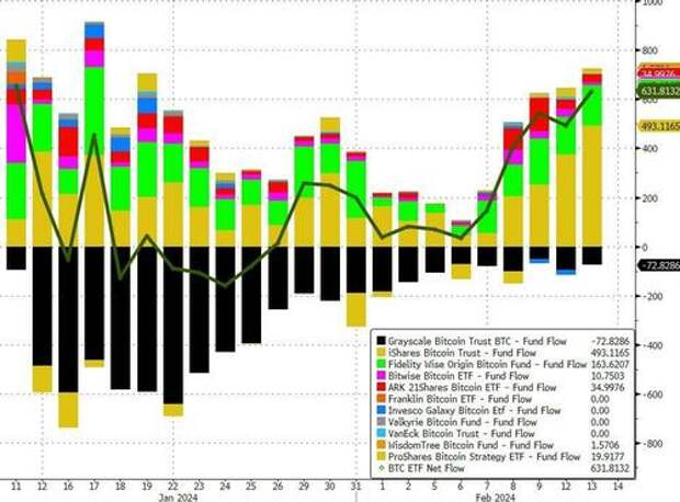 The recent renaissance in crypto has been fueled in large part by the inflows to Bitcoin Spot ETFs, which have very recently started to accelerate. Yesterday saw the largest net inflow into the ETFs since inception...
