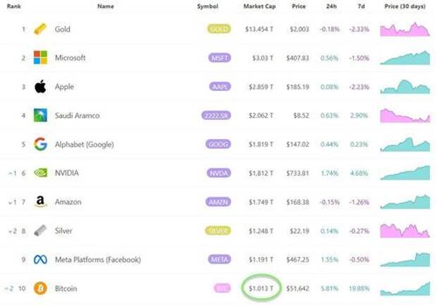 While all eyes have been focused on NVDA's rise, Bitcoin has quietly surpassed Tesla, TSMC, Eli Lilly, and today it overtook Berkshire Hathaway to become the 10th most valuable asset in the world.
