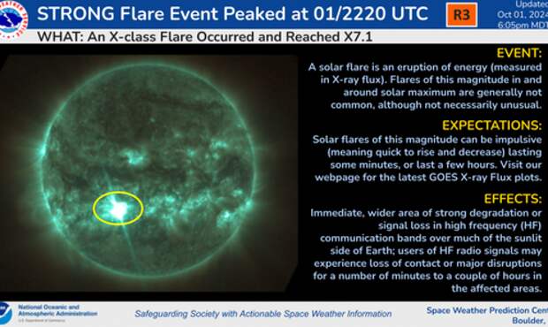NOAA's Space Weather Prediction Center detected an X7.1 solar flare on Tuesday, the second strongest of Solar Cycle 25. It originated from Active Region 3842. The most powerful flare of the cycle, an X8.