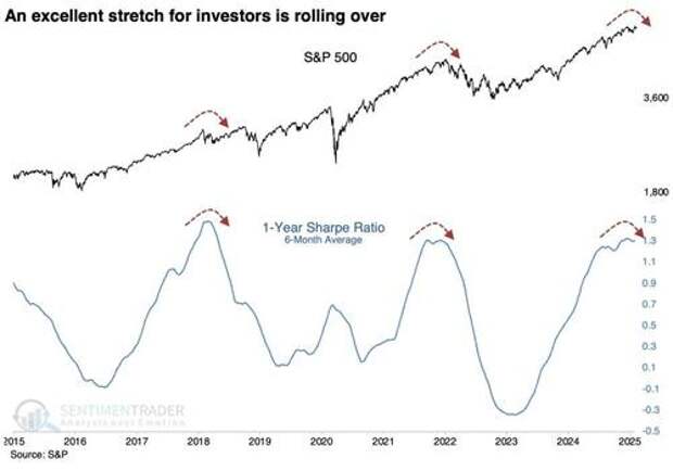 Speaking of excess, Sentiment Trader recently did a great piece on the market’s Sharpe ratio. The conclusion of their report is worth considering.
