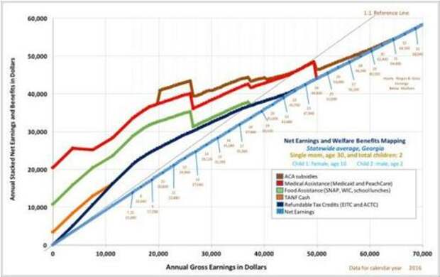 To see the situation through the eyes of an economist, consider the following quote from “Disincentives for Work and Marriage in Georgia’s Welfare System”: