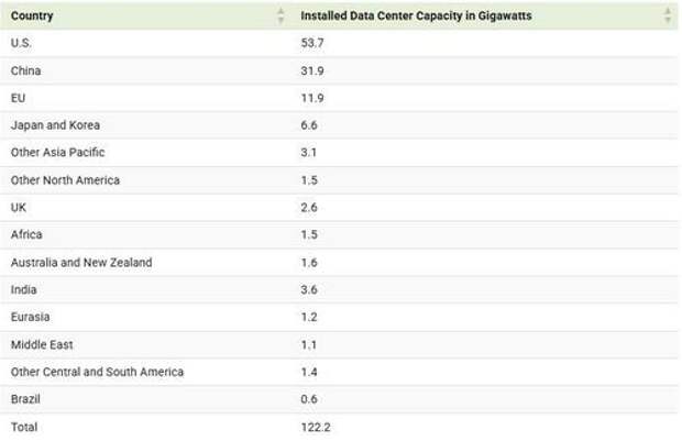 Today, the U.S. leads globally in data center capacity by a wide margin.
