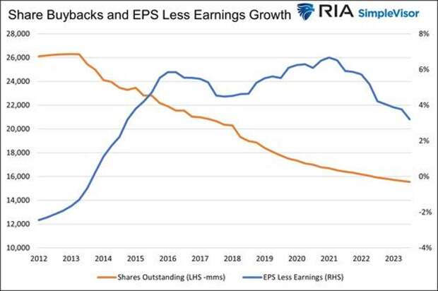The point of sharing those statistics and the valuation premium is to contextualize whether Apple can grow at the growth rate implied by its investors. Further, if its earnings growth alone doesn’t support a valuation premium to the market’s valuation, can the continued use of stock buybacks support the premium?