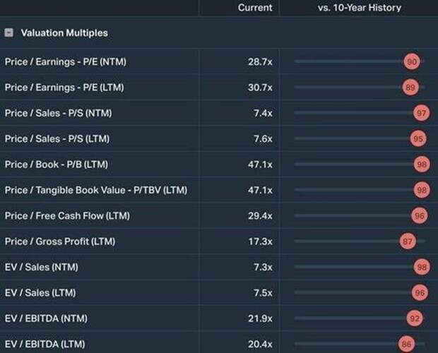 Apple’s valuations are near their most expensive levels of the last ten years. Now consider that today’s valuation premiums are amidst a much higher risk-free bond yield than during most of the previous ten years.