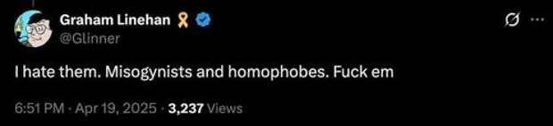 Linehan has been targeted for cancellation and much worse for years now, since making his views on the gender issue clear: