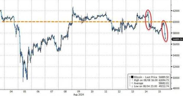 Bitcoin was clubbed like a baby seal again, back below $57,000 (as it seems someone is dumping crypto at $60,000 to chase what little momentum is left in stonks)...