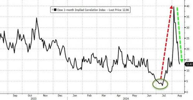 And we also note that implied correlation has collapsed too - which shows that this vol compression is all systemic (index) and not idiosyncratic (single-name) driven...