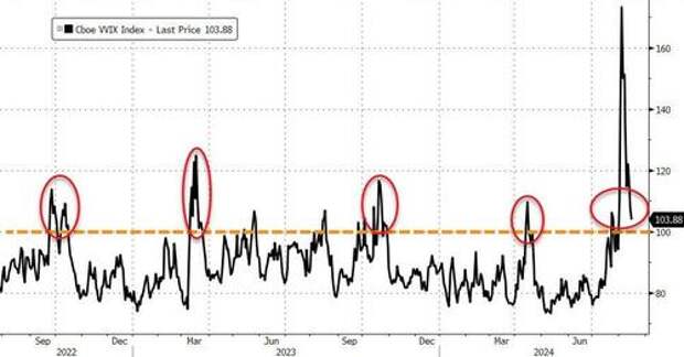 While VIX has tumbled, we note that VVIX remains above the scary 100 level still as the market is not fully buying that the panic is over...
