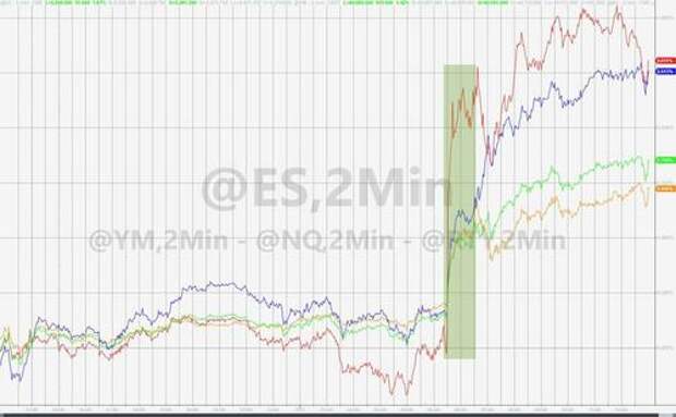 Nevertheless, stocks soared higher with Small Caps leading the charge along with Nasdaq as The Dow lagged (but was still up bigly). Some late day profit-taking spoiled the party but overall, it was a big day...