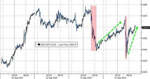 Gold puked on the Retail Sales print but recovered to end higher on the day (despite a strong dollar)