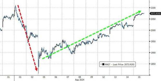 ...and Nasdaq surged on the back of an aggressive bid for Mag7 stocks (the basket of Mag7 stocks is up 6 straight days)...