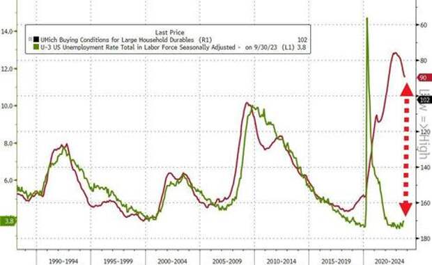 Oh, and one more thing. The historical relationship between buying-sentiment and unemployment has broken after almost 40 years...