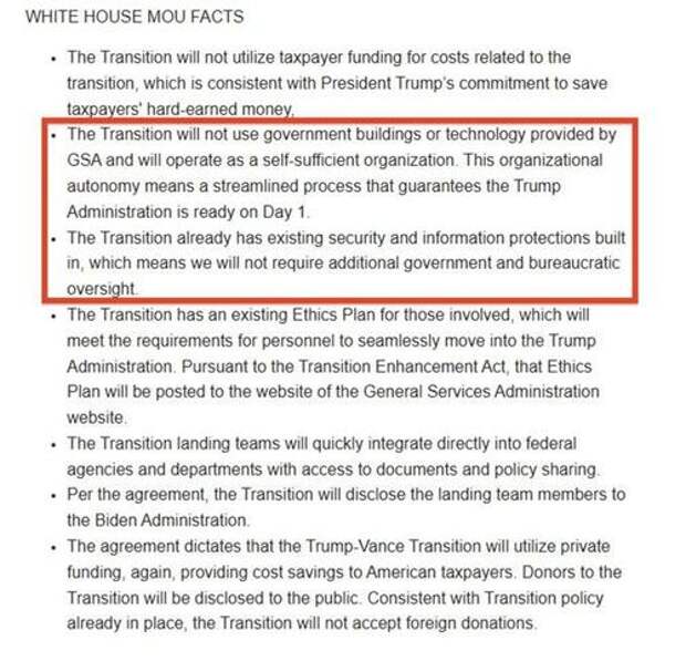 In the first Trump administration, the GSA had wiretaps, office bugs, and gave all the electronic communication information from the Trump transition to the FBI, IC and later Robert Mueller. In essence, the GSA spied on the Trump team, then gave all the data to the operatives who were in place to target them. The Trump team is not making this mistake again.
