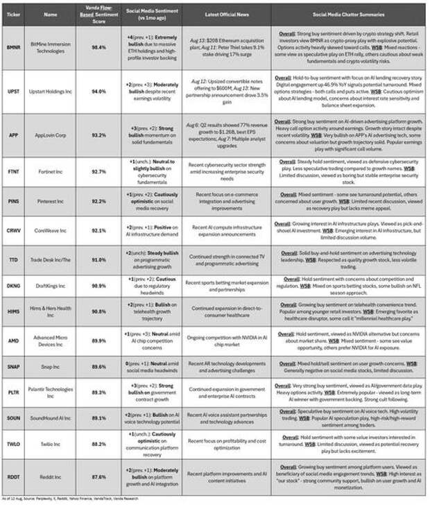 An analysis by Vanda Research found that BMNR was also the stock that attracted the most investor attention in the US, with a Vanda Flow sentiment score of 98.4%, surpassing every other stock in the list.