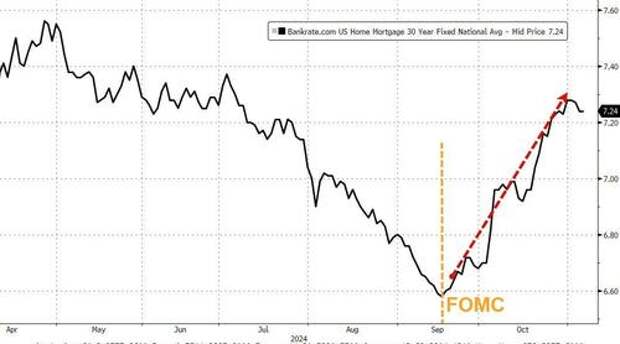 But, more problematically, the mortgage rate has ripped higher since The Fed cut...