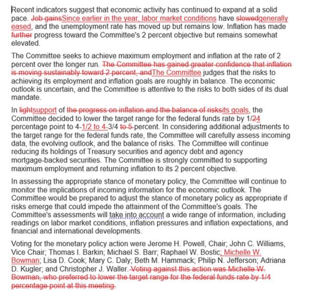 Most notably, removing language that Fed has "gained greater confidence that inflation is moving sustainable toward 2 percent".
