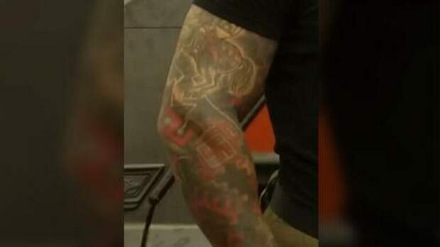The blurred out tattoo in question from the CBC footage: