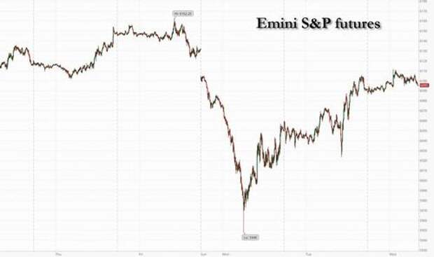 Futures are flat with Tech/Small-caps big higher as the market looks to recover from Monday’s tech plunge. As of 8:00am S&P futures are unchanged, erasing a modest earlier gain during the European session; Nasdaq futures extend their Tuesday rebound and rise 0.