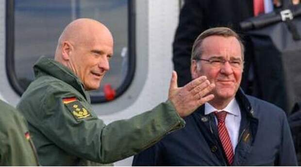 The Inspector General of the German Air Force, Ingo Gerhartz, welcomes Federal Defence Minister Boris Pistorius at Holzdorf Air Base, 12 October 2023 – Source: RT