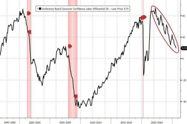 “The present situation and the expectation components both weakened. Notably, consumers’ appraisal of current job availability declined for the eighth consecutive month, but stronger views of current business conditions mitigated the retreat in the Present Situation Index.'
