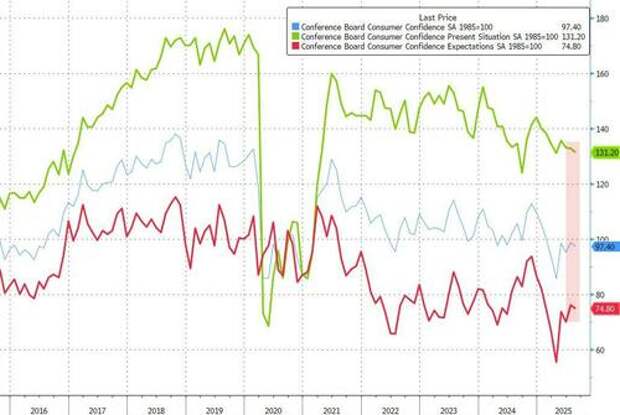 The Expectations Index - based on consumers’ short-term outlook for income, business, and labor market conditions - fell 1.2 points to 74.8 (from an upwardly revised 76.0).