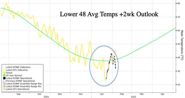 According to Bloomberg data, the average Lower 48 temperatures have averaged well below a 30-year trend for much of January.