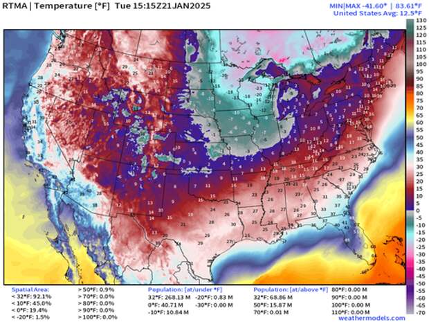Over 40 million people are experiencing temperatures at or below 0ºF this morning, and 10 million are at or below -10ºF...incredible.