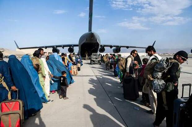 Passengers board a U.S. Air Force C-17 at Hamid Karzai International Airport in Kabul, Afghanistan, on Aug. 24, 2021. Master Sgt. Donald R. Allen/U.S. Air Forces Europe-Africa via Getty Images
