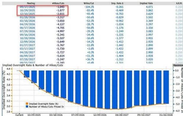OIS futures are convinced that a cut of at least 25bps is a done deal, despite core PCE and CPI sitting well above the Fed’s 2% target at 2.9% and 3.1% respectively. A delta of 26.1bps is currently priced in to the implied Fed Funds rate following a dovish pivot from Jerome Powell at Jackson Hole, two consecutive months of dreadful jobs figures (which the FT is today laying at the feet of Trump’s tariffs) and some even more dreadful revising-away of previously reported employment gains that appear to have been – in part – magicked-up by the BLS’s Birth-Death model.