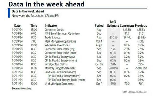 1% (4.05% unrounded), which however was due to a record surge in 785,000 government jobs. Still, even though the monthly payrolls report is better known as a "random number generator", even with that caveat it was an impressive report and completely against recent fears, sending the dollar and yields soaring. The main impact was a +21.6bps increase in 2yr US yields on Friday and the probability of a 50bps cut next month declining from around 33% to effectively zero in the process. Reid's own view was always that the amount of rate cuts priced in since mid to late summer was only likely if we had a recession, and if we didn't, then the rates market overall was too pessimistic. He would still say that today.In terms of moving this argument on, it's a relatively quiet week in the US apart from Thursday's CPI but in terms of the main global day-by-day highlights we have the following. Today sees Germany factory orders - which cratered - and Eurozone retail sales, tomorrow sees German Industrial Production, and Swedish CPI, Wednesday sees the last FOMC minutes and a 10yr UST auction, Thursday sees the release of the account of the last ECB meeting, France present its budget proposal, Japanese PPI, German retail sales, Italian industrial production, Norway and Denmark CPI, and a 30yr UST auction, with Friday home to US PPI, the US University of Michigan survey, UK August monthly GDP and US Earnings season kicking off with JPMorgan, Wells Fargo, BlackRock, Bank of New York Mellon all reporting.