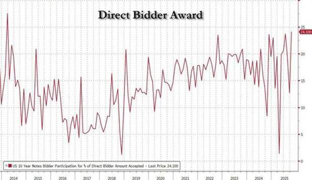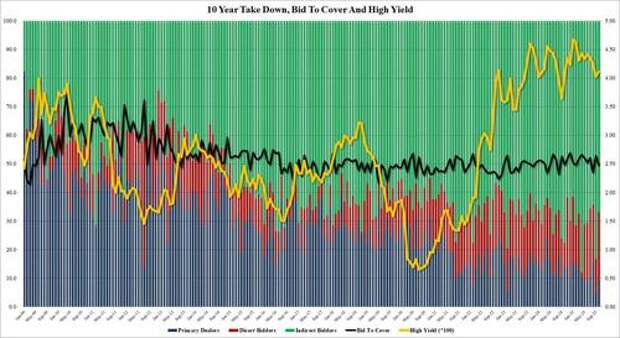 The internals were also ugly, with Indirects (aka foreign bidders) plunging from 83.1% to 66.8%, which also was below the six-auction average of 73.7%. And with Directs taking down 24.1%, or the highest in 11 years...
