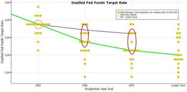 However, the market remains significantly more hawkish than The Fed's dots for 2026 and 2027...