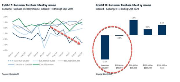 Similar to past quarters, consumers have remained careful in their spending decisions, as discretionary spend has continued to be soft. Below data points show recent sentiment for the lowest income consumer continues to be under pressure, with both purchase intent and consumer confidence below historical levels. That said, consumer confidence trends have recently improved across income demographics, which could potentially be reflective of a change in consumer sentiment and expectations.