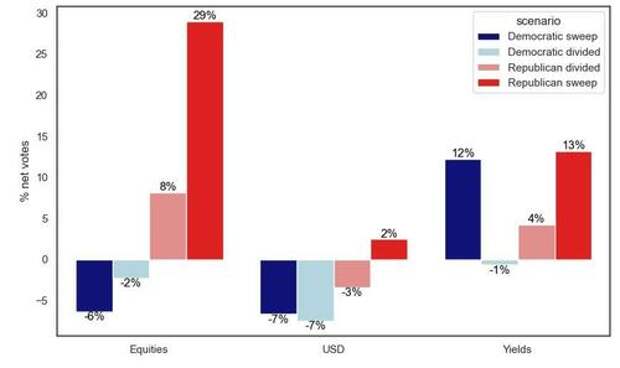 Simply put, Unified government is a major risk for bonds - Equities most sensitive to a Trump win.