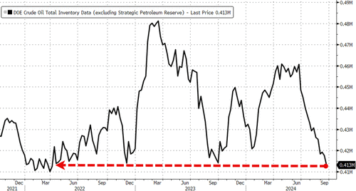 Total crude stocks are back at their lowest since April 2022...