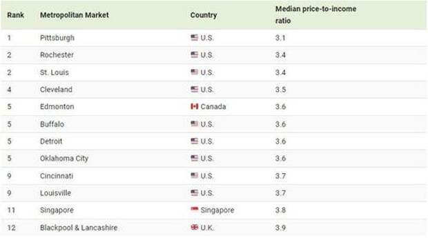 Cities with a median price-to-income ratio of less than 3.0 are considered “affordable”, while those between 3.1 and 4.0 are considered “moderately unaffordable”.