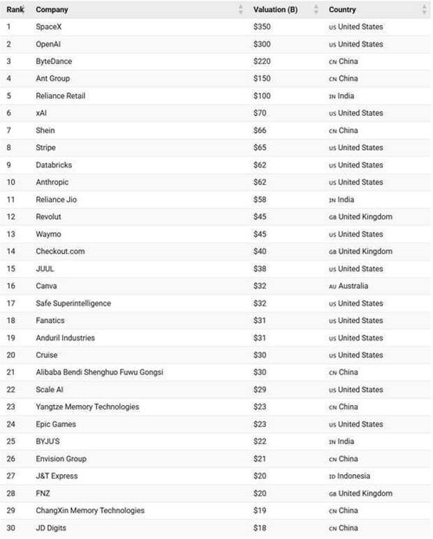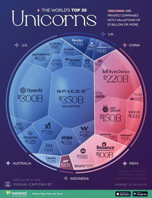 Below, we show the world’s top 30 unicorns by valuation as of July 4, 2025: