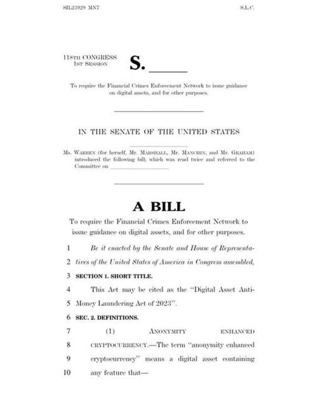 Sen. Warren has co-sponsored the Digital Asset Anti-Money Laundering Act of 2023.