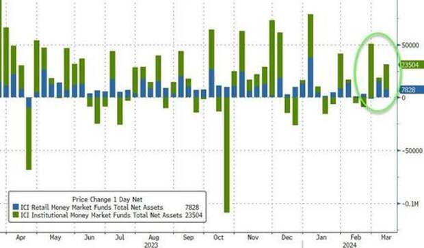 Institutional funds saw a large $23.5BN inflow while Retail funds saw $7.8BN inflow...