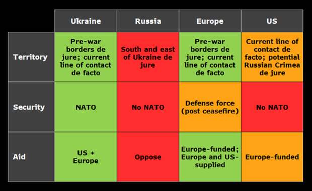 Ukraine has signaled some flexibility on de facto control along current frontlines, but refuses to formally cede territory, including Crimea, seeing this as unconstitutional and a prelude to further Russian aggression. Kyiv also rejects any limits on its military or European Union aspirations, as well as Russian demands on domestic issues such as language rights.
