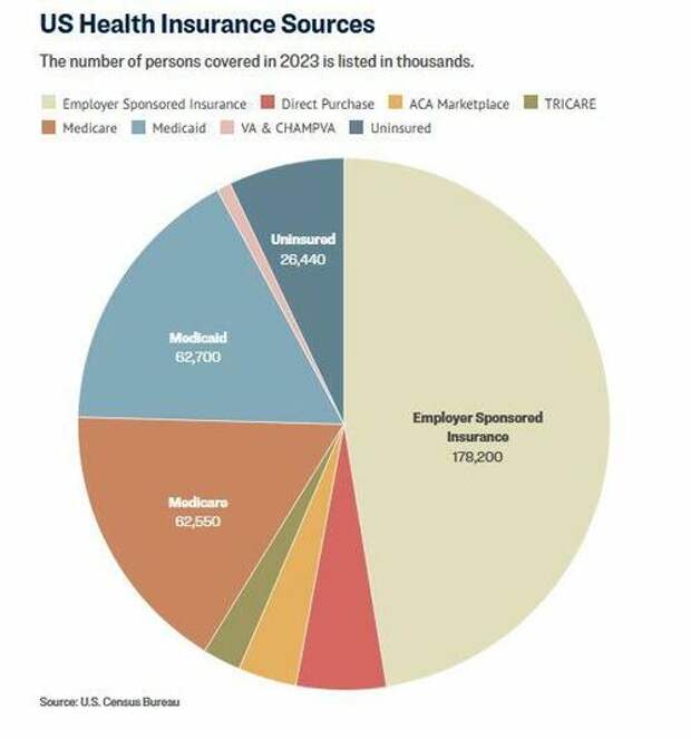 Employer-sponsored insurance (ESI) is the most common way Americans get health care coverage. This includes self-funded plans, in which the employer acts as the insurer, and commercial health insurance purchased by a company for its employees. More than 178 million people had ESI in 2023, according to the U.S. Census Bureau.