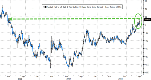 ...extending the bear-steepening in the yield curve from yesterday's Powell comments. 2s10s is now at its steepest since June 2022 (notably disinverted)...