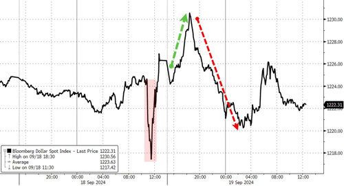 In fact, this is first time that yields rise after a 50bps cut since Lehman (Oct 2008).