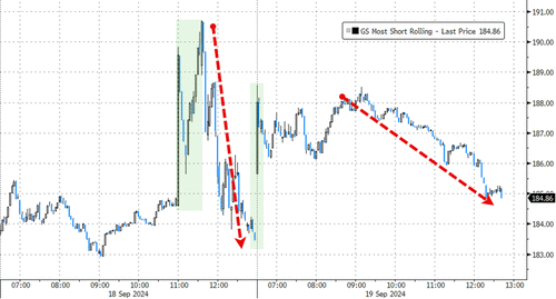 Goldman's trading desk pointed out that volumes +20% today vs the 20dma and ETFs capturing close to 33% of the tape (but they highlight that top of book liquidity stands out as extremely poor, tracking -60% vs the 20dma).