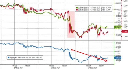 Interestingly, rate-cut expectations to year-end 2024 (and 2025) are lower post-Fed crisis-cut. The market still expects 3 more cuts in 2024 though (and four more on top of that in 2025)