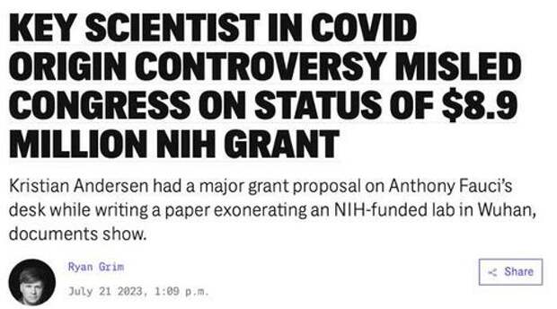 But it doesn’t end there. After Andersen was caught lying in his July 2023 congressional testimony, The Intercept published an expose a few days after, noting Andersen had also lied to Congress about his NIH funding from Fauci.