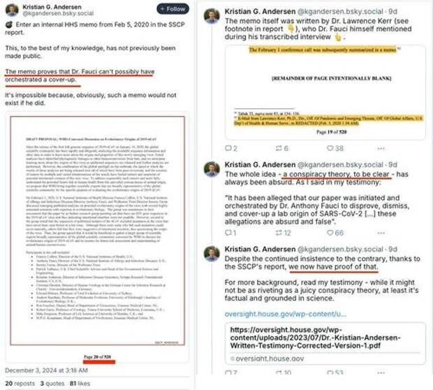 To be clear, nothing is stopping Andersen from lying to his followers on Bluesky. He can continue posting truncated portions of the report to falsely assert Fauci had no involvement in his Nature Medicine paper. Lying liars lie.