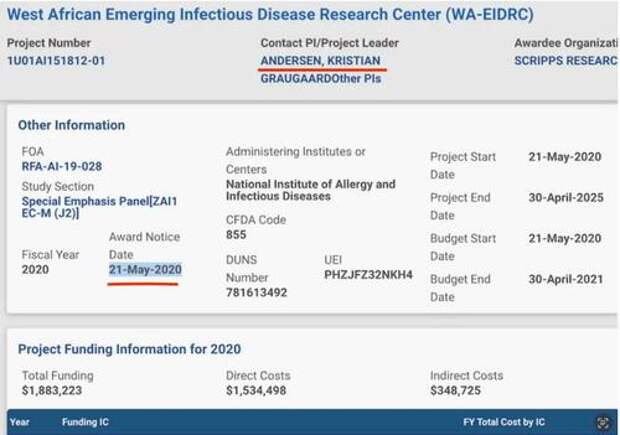 In case you’re still not certain if Andersen is a liar, The Intercept posted a screenshot of Andersen’s grant, showing that Fauci had given final approval on May 21, 2020.