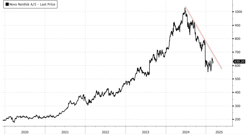 The introduction of Novo's new direct-to-consumer model for Wegovy sent shares in Copenhagen up nearly 4% on Wednesday. Shares are still locked in a vicious bear market, down 40% since peaking in late June 2024.